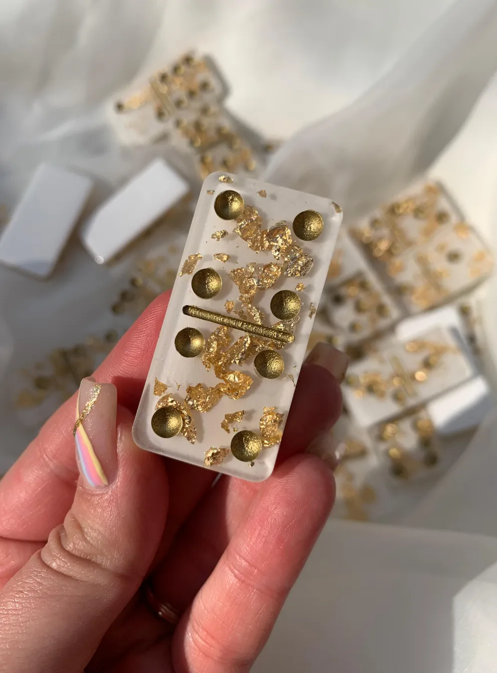 * Dominó decorativo com glitter ou camadas — para vender de R$120 a R$250