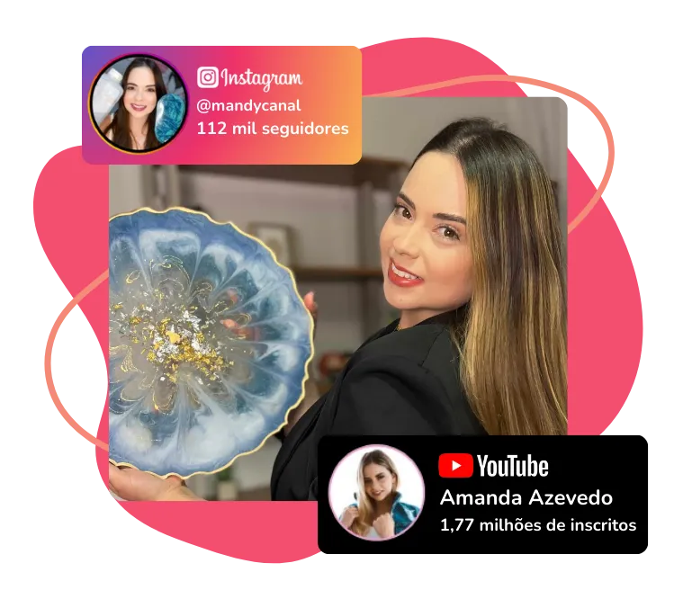 Sua trajetória no universo criativo começou há mais de 11 anos, produzindo conteúdo de artesanato e DIY para a internet. Ao longo dessa jornada, gravou centenas de vídeos e conquistou uma audiência impressionante: são mais de 1,7 milhão de inscritos no YouTube — o maior canal brasileiro que fala sobre resina epóxi — mais de 115 milhões de visualizações e dois perfis no Instagram com mais de 100 mil seguidores cada.