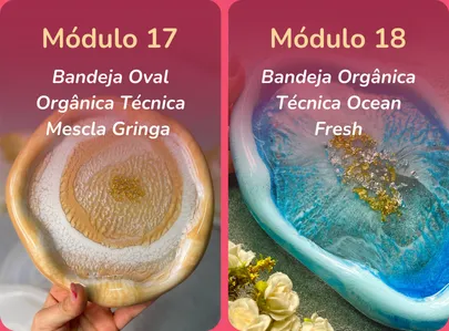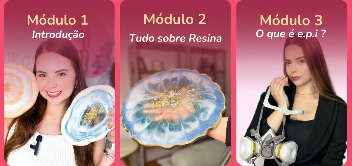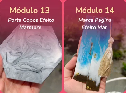 Nesta fase, você vai aprender tudo o que precisa para começar com segurança, desde os tipos de resina e como manuseá-la corretamente, até a criação das suas primeiras peças vendáveis.